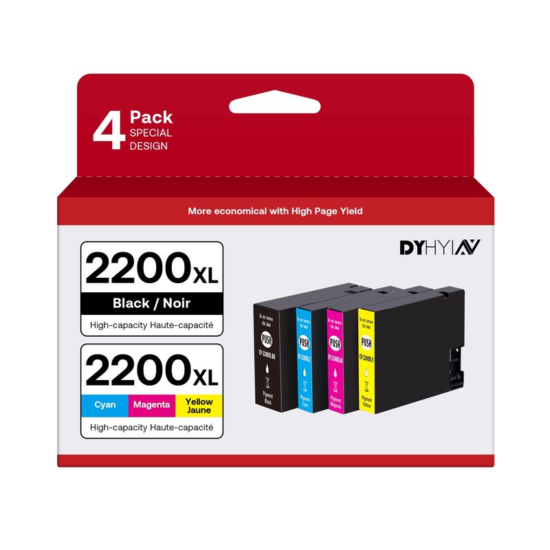 - Package Included:4 pack High Yield Compatible Canon maxify 2200 ink cartridges (1 Black PGI-2200XL, 1 Cyan PGI-2200XL, 1 Magenta PGI-2200XL, 1 Yellow PGI-2200XL