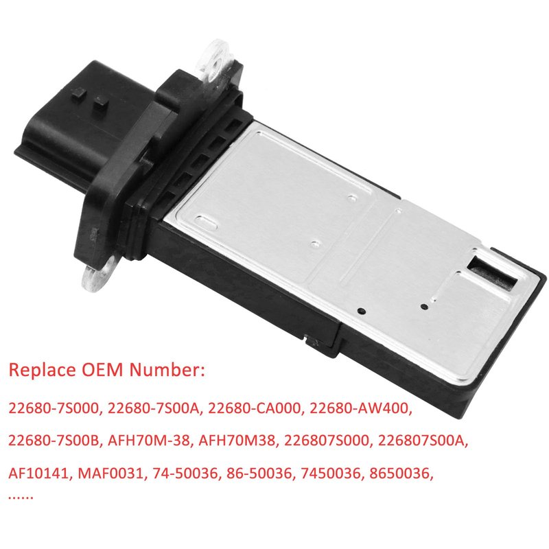 - Replace OEM Number: 22680-7S000, 22680-7S00A, 22680-CA000, 22680-AW400, 22680-7S00B, AFH70M-38, AFH70M38, 226807S000, 226807S00A, AF10141, MAF0031, 74-50036, 86-50036, 7450036, 8650036, 22680AW400, 22680CA000, 226807S00B, 1380066J00, 13800-66J00, 5S2984, 0617S, MF21058, 245-1117, 100GEGT880OK, 336-60644, MF21058N.
