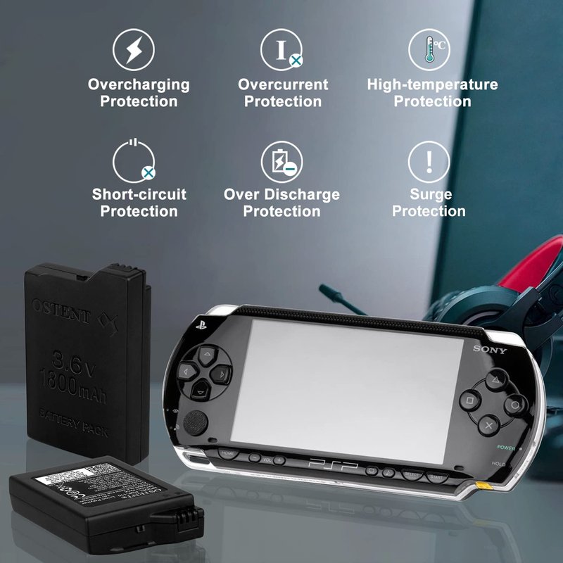 OSTENT High Capacity Quality Real 1800mAh 3.6V Lithium Ion Polymer Li-ion Polymer Rechargeable Battery Pack Replacement for Sony PSP 1000 PSP-110 Console