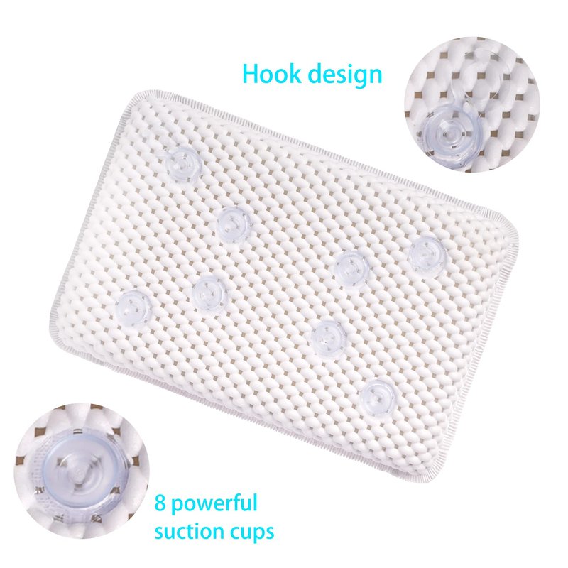 OSVINO Bath Pillow Thick Comfy Drainage for Jetted Tub Spa Cushion with 8 Suction Cups, White, 7.5"x11.5"x2"