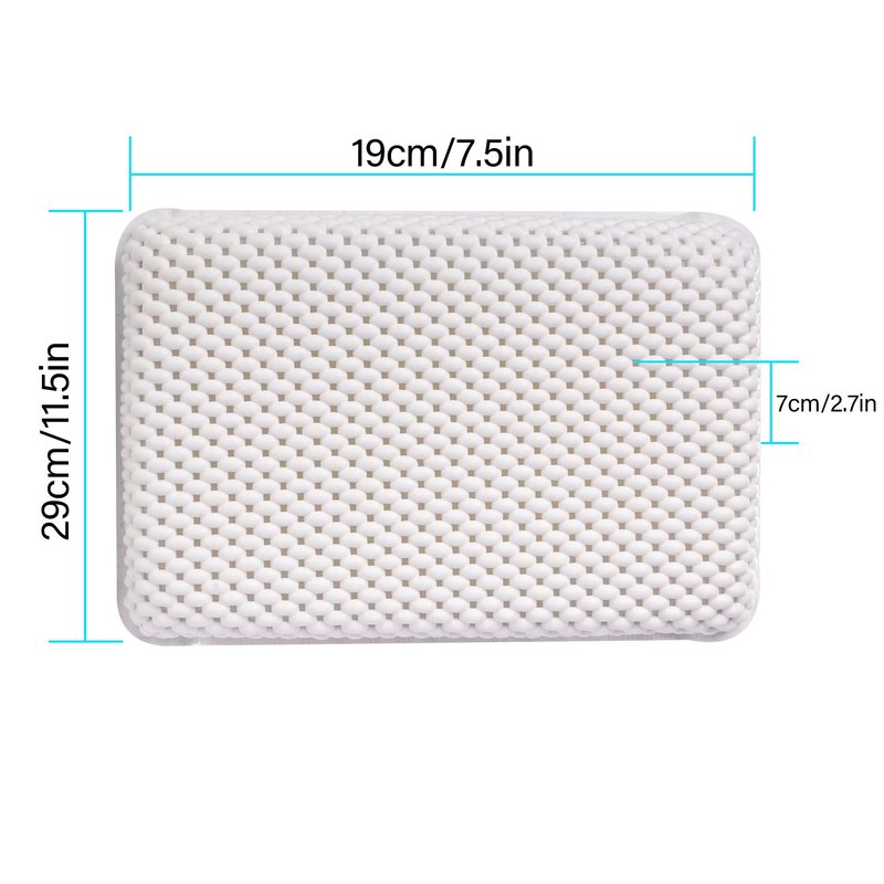 - Size: 7.5"x11.5"x2"/19x29x5cm. Weight: 250g. Package: 1 x Bath pillow