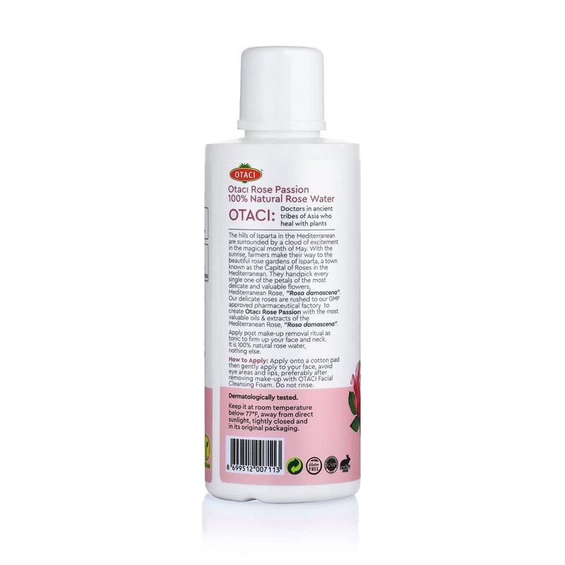 It is 100% natural rose water, nothing else. Perfect for toning face, neck, decolletage, eye area, dry skin, body and hair for balancing PH and acne. The hills of Isparta in the Mediterranean are surrounded by a cloud of excitement in the magical month of May. With the sunrise, farmers make their way to the beautiful rose gardens of Isparta, a town known as the Capital of Roses in the Mediterranean. They handpick every single one of the petals of the most delicate and valuable flowers, Mediterranean Rose, “Rosa damascena”. Our delicate roses are rushed to our GMP approved pharmaceutical factory to create Otacı Rose Ritual with the most valuable oils & extracts of the Mediterranean Rose, “Rosa damascena”.