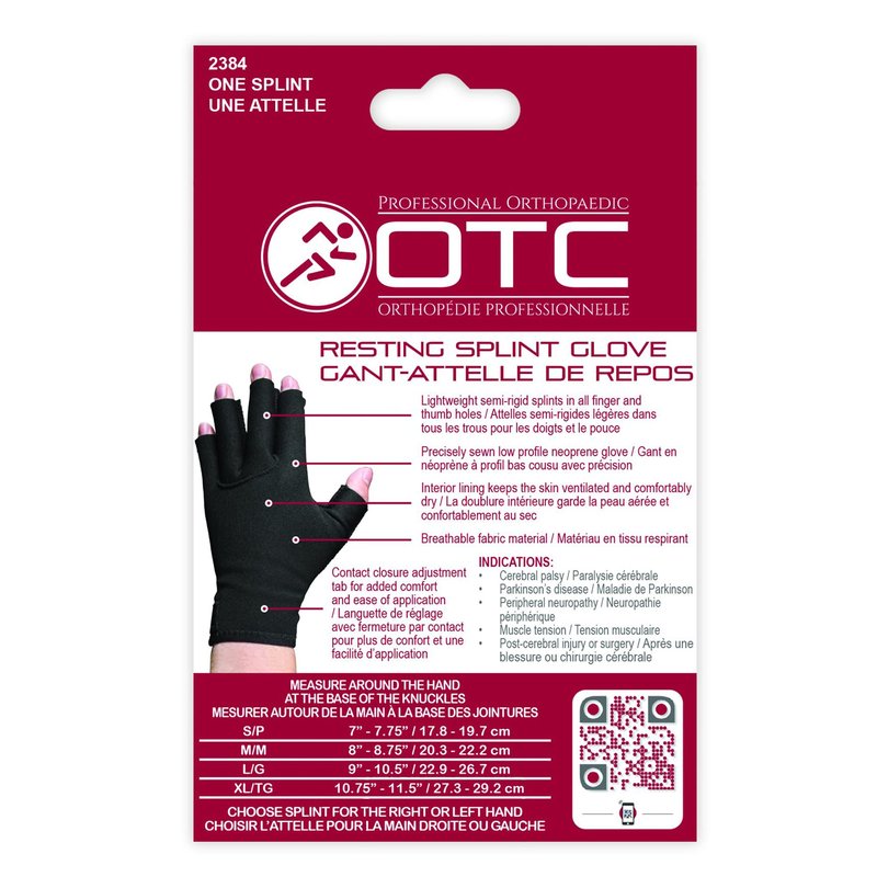OTC Resting Splint Glove, 5 Finger Semi-Rigid Splints, Open Tips, Black, Right Hand, Medium