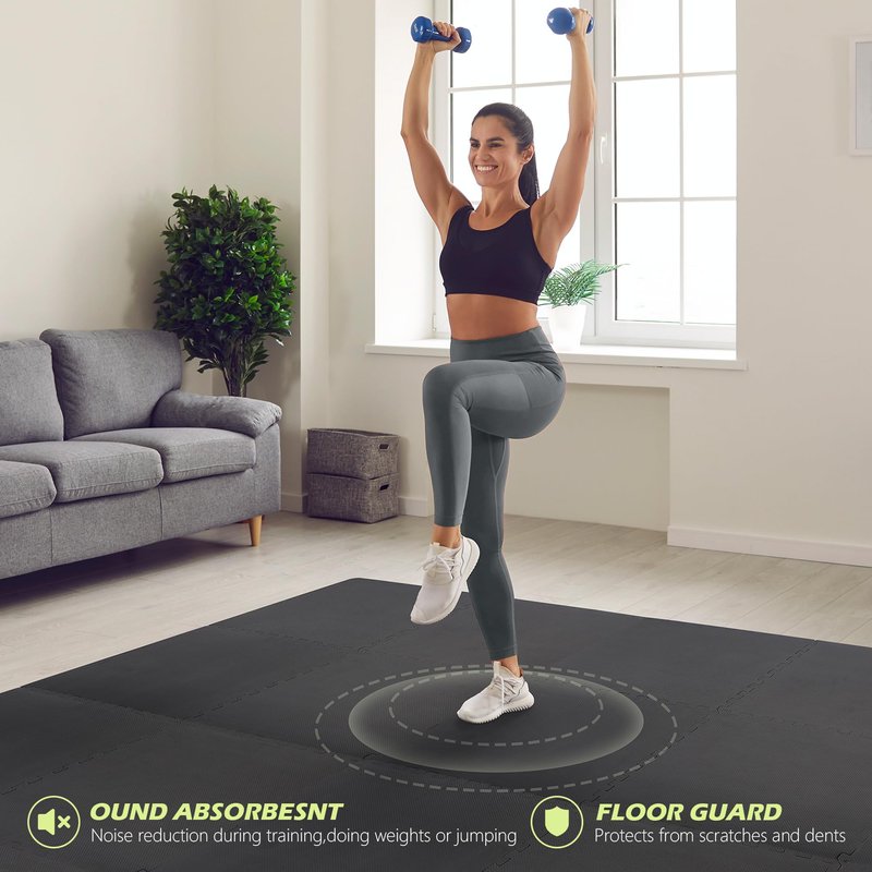 Oteymart 24 Pieces Puzzle Exercise Mat Extra Thick 3/4 Inches EVA Foam Interlocking Tiles Floor Gymnastics Mat Fitness Equipment Mat for Home Protective Flooring Cushion(96 Square feet)