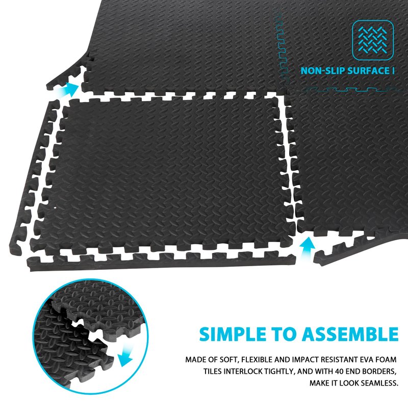 Features a non-slip surfaces, and EVA high dense foam, this puzzle mat offers excellent slip resistant advantage to prevent injuries. Quick assemble and easy to store.