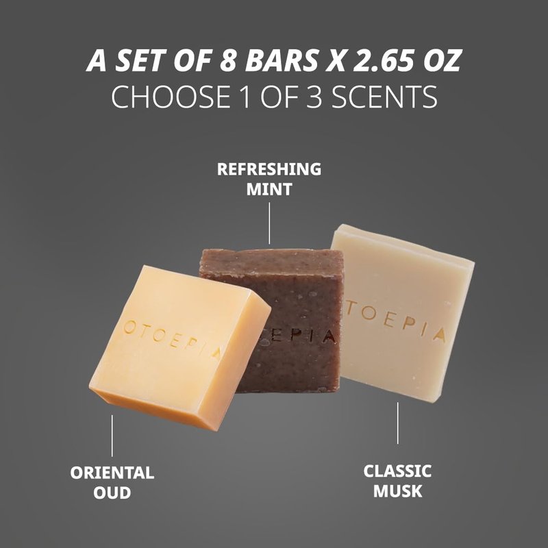 Otoepia Premium Natural Olive Oil Soap for Men - Shaving, Hair, Body, and Face Bar Gentle for Sensitive Skin - 8 Bars for Moisturizing & Nourishing in Musk