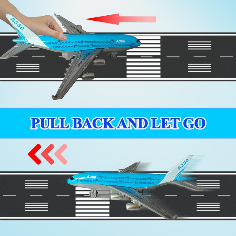 - PULL BACK AND LET GO METAL TOY PLANE - All four of the children's airliner toys have a pullback and go feature that allows the plane to move a large distance forward on its own by simply pulling back and letting go, just as an airliner would taxi in preparation for takeoff at an airport.