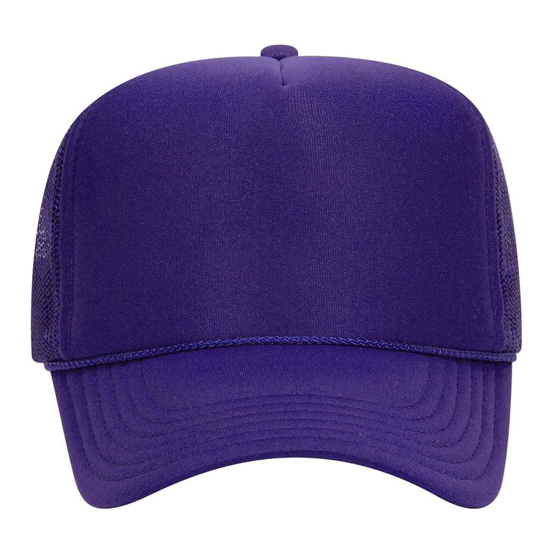 Otto Cap 5 Panel High Crown Mesh Back Trucker Hat Polyester Foam Front Purple
