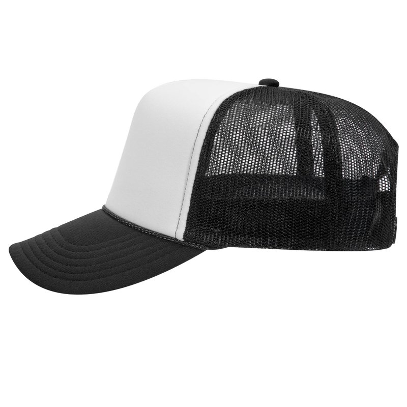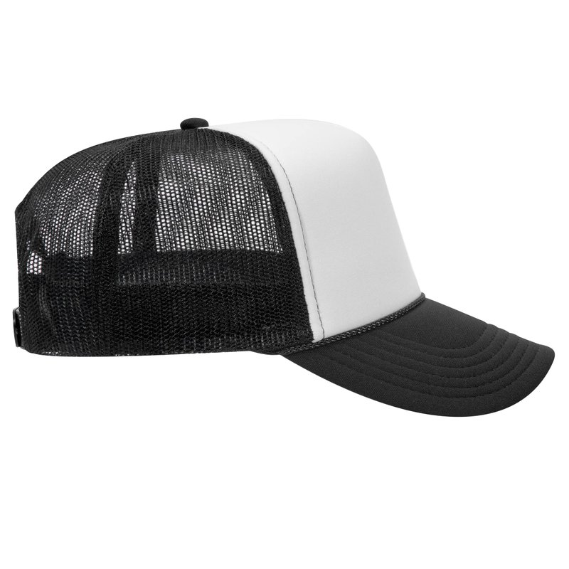 OTTO Polyester Foam Front 5 Panel High Crown Mesh Back Trucker Hat - Blk/Wht/Blk