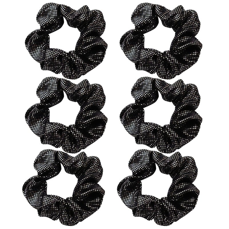OTYOU 6 Pack Shiny Polka Dots Metallic Hair Scrunchies Rich Tones Scrunchy Bobbles Elastic Hair Ties Hair Accessories for Performance,Dance,Cheer,Party Favors (Black)