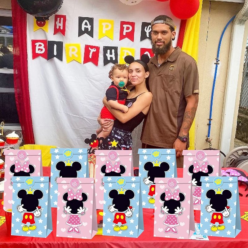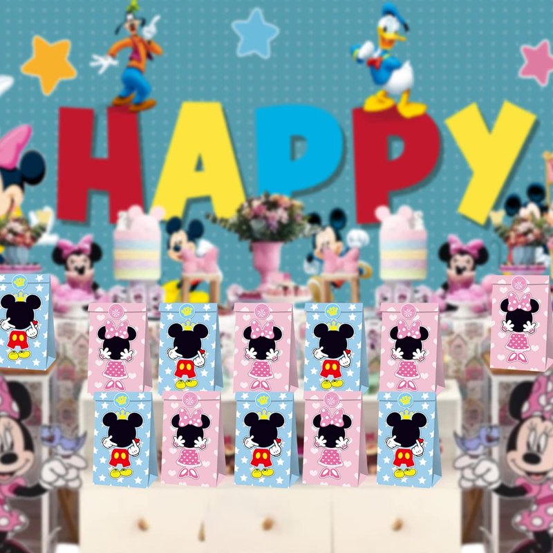 OU RUI 12PCS Party Candy bag for Mickey Minnie, Mickey Minnie theme party supplies,Mickey Minnie Paper Candy sack(Give away stickers)