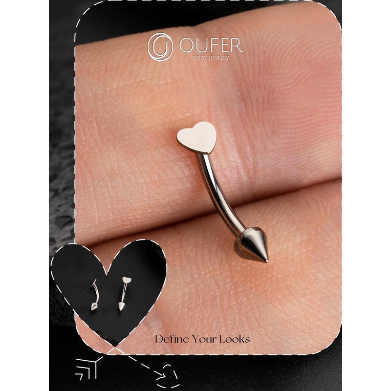 OUFER Rook Piercing Jewelry, G23 Solid Titanium Eyebrow Rings, Heart Vertical Labret Lip Jewelry, 16G Curved Barbells, Daith Rook Earrings for Women Men