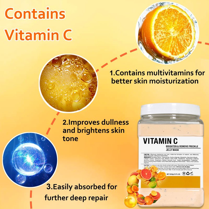 - IMPROVE YOUR SKIN QUALITY - Vitamin C has the effect of stimulating the production of collagen, which helps improve your face complexion, to rejuvenate skin and make the skin firm and smooth, the vitamin C jelly masks for facials professional relieves the daily pressure on skin, will give a glow to your skin.