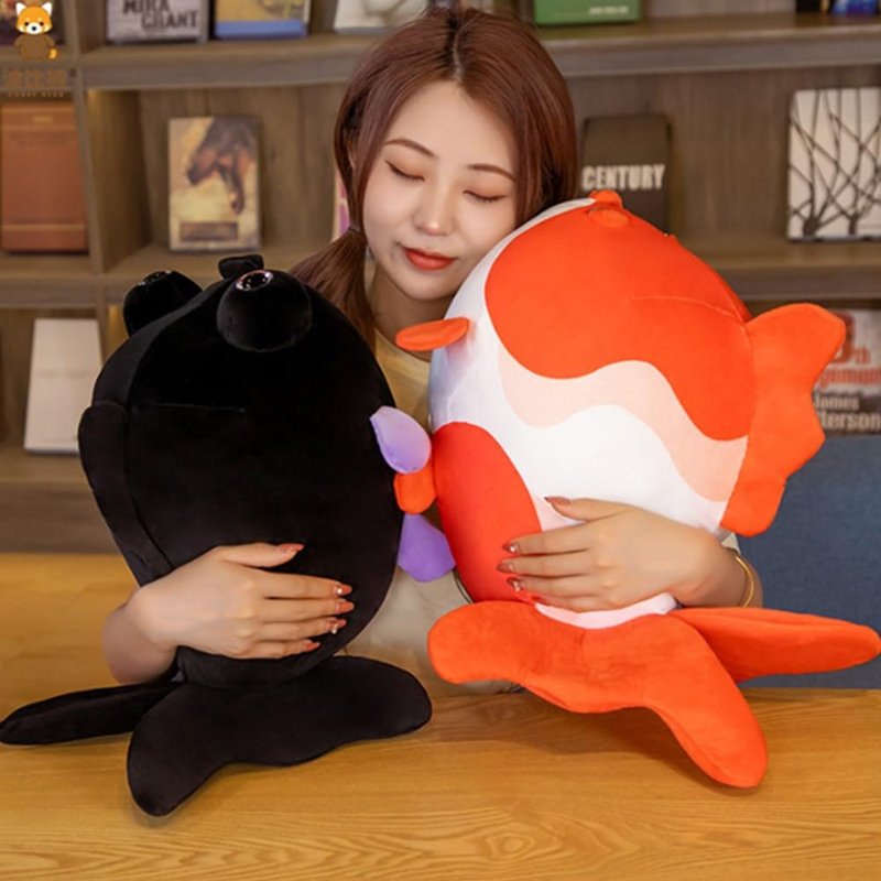 - Size : Simulation goldfish pillows measures 13.8inch/35cm,are available red and black color. Can be used as a pillow, which will make you more comfortable and safe when you are relaxing and working. can accompany you to read, watch TV, study and doze off