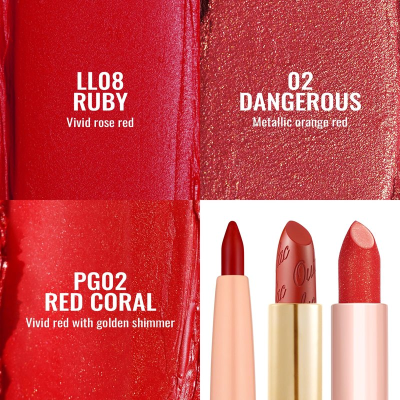 Oulac Lipstick & Lipliner Set 3PCS High Impact Lipcolor with Moisturizing Formula, Vegan Beauty, Full-Coverage Lip Color, Gift Lipstick for Women, LL08+02+PG02