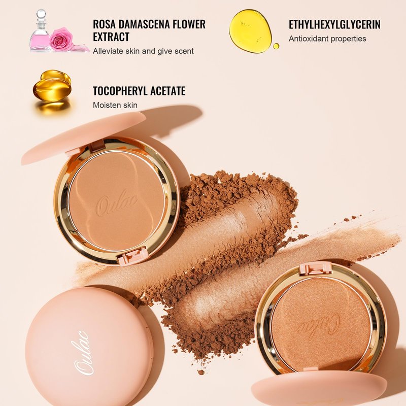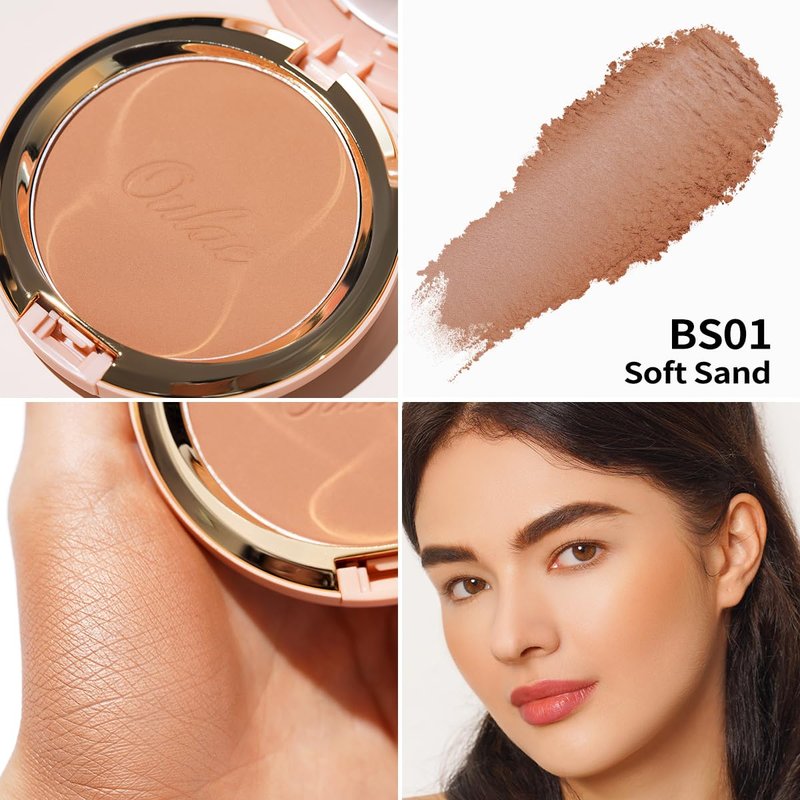 Oulac Matte Bronzer Powder Face Makeup Compact - Natural Sun Kissed Finish, Highlighter Bronzer Blush, Contour Powder, Soft Touch Texture, Vegan & Cruelty-Free BS01