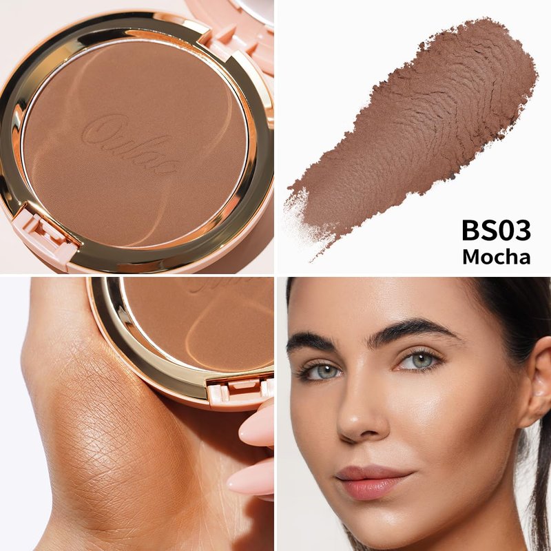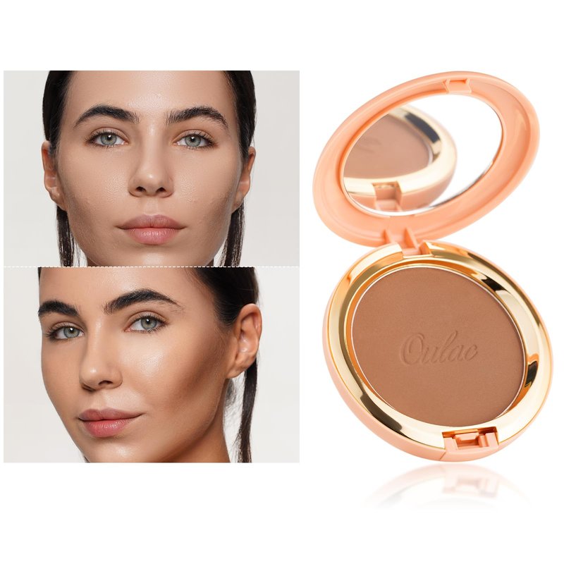 Oulac Matte Bronzer Powder Face Makeup Compact - Natural Sun Kissed Finish, Highlighter Bronzer Blush, Contour Powder, Soft Touch Texture, Vegan & Cruelty-Free BS03