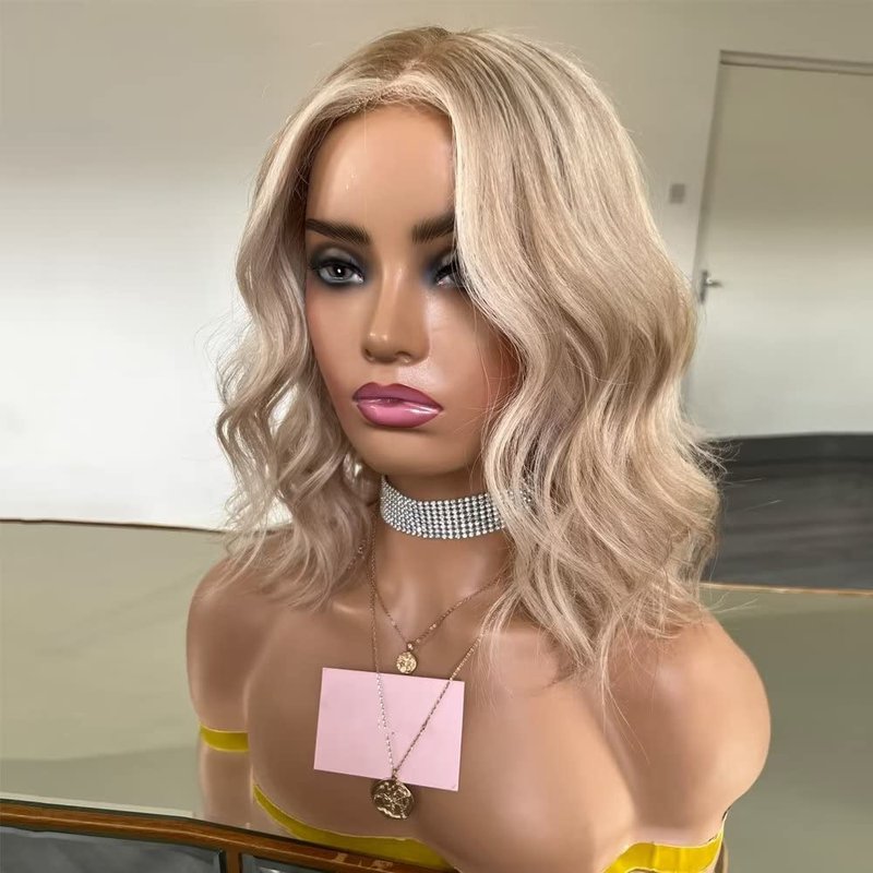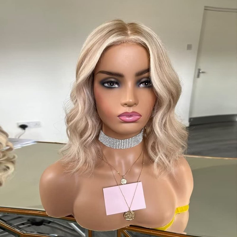 oulaer Blonde Highlight Wig Short Wavy Wig 13x6 Invisible Lace Front Wig 27/613 Loose Wave Human Hair Wig Pre Plucked HD Lace Wig Short Bob Wigs Bleached Knots 150% Density 10Inch