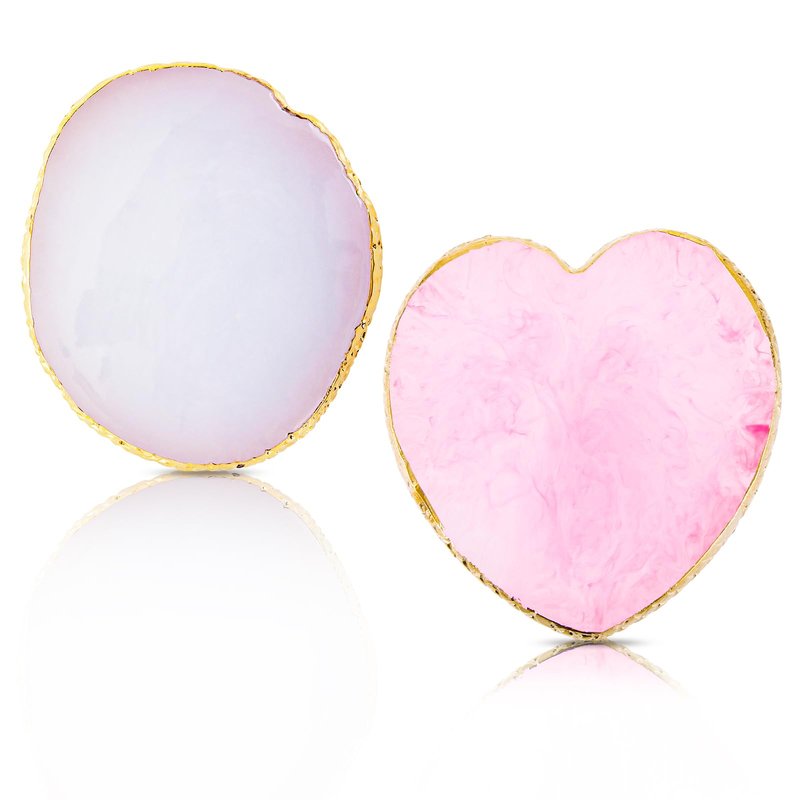 Ouligay 2pcs Heart-Shaped Resin Nail Art Palette, Gold Edge Round Makeup Mixing Palette, Nail Polish Plate, Nail Art Display Board Makeup Plate Cosmetic Mixing Tools