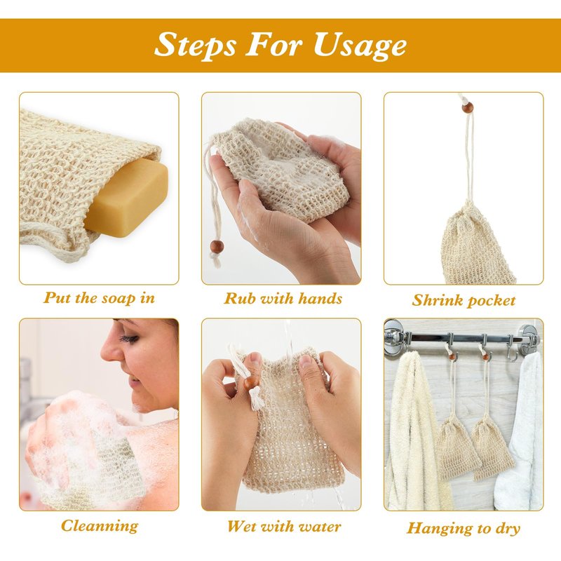 - 【Rational Design】The soap bag is made from sisal, which is rough and durable, that it will stay with you for a long time. Drawstring design not only ensures that small soap do not fall away, but also allows it to be hung on the wall and quickly dried