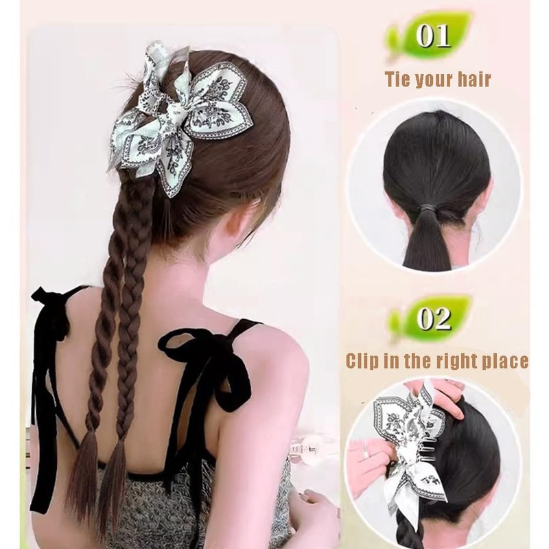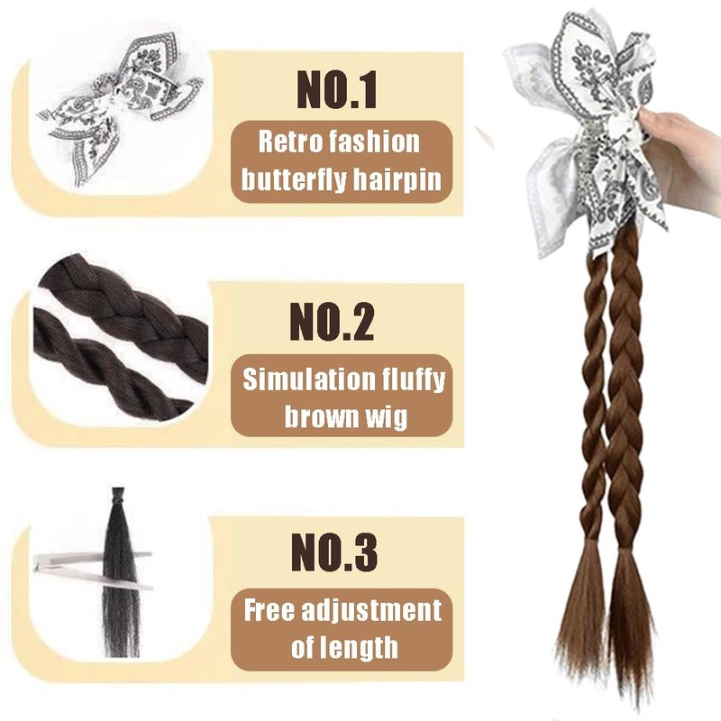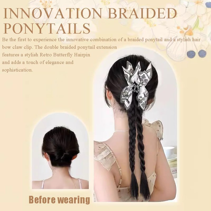 - 【Innovation Braided Ponytails】Be the first to experience the innovative combination of a braided ponytail and a stylish hair bow claw clip. The double braided ponytail extension features a stylish Retro Butterfly Hairpin and adds a touch of elegance and sophistication.