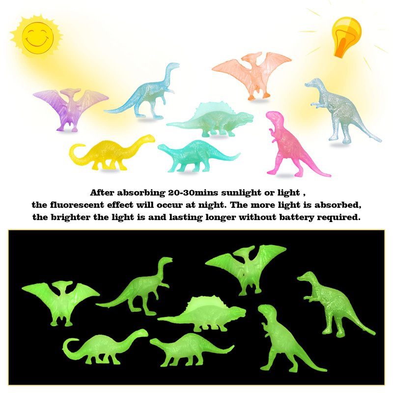 - ✔️【PREMIUM MATERIAL】The glow in the dark dinosaurs with vibrant colors are made from durable, flexible, non-radioactive luminescent vinyl, safe for kids. Their uniquely molded textures and richly painted details bring them to life and help inspire creativity in kids.