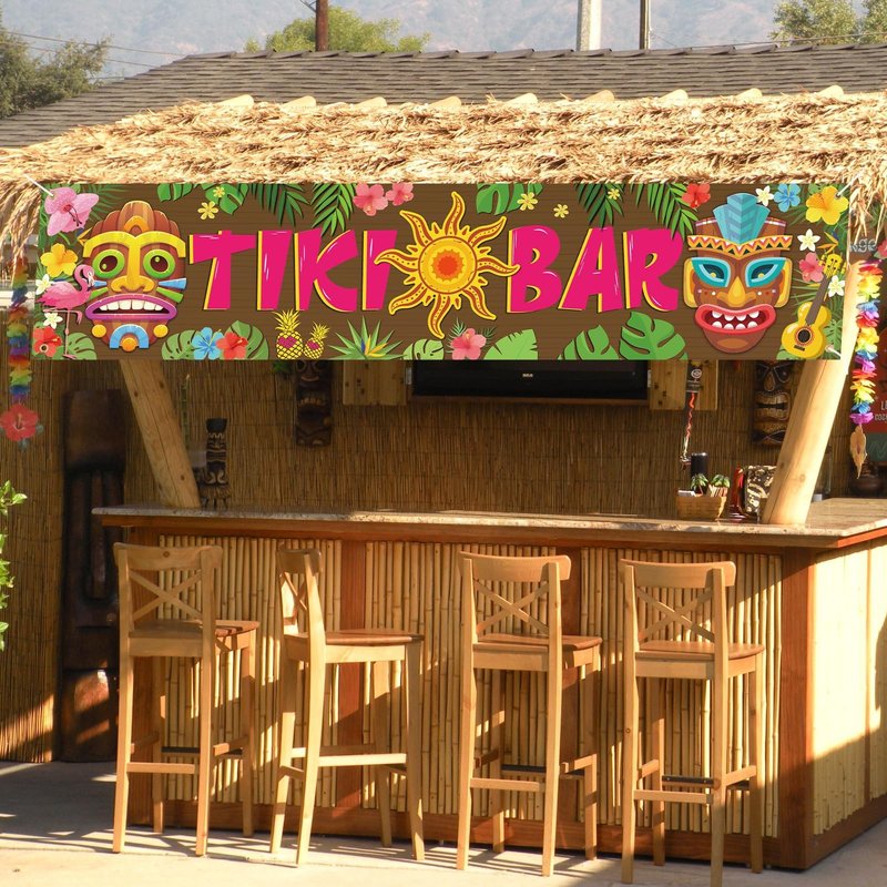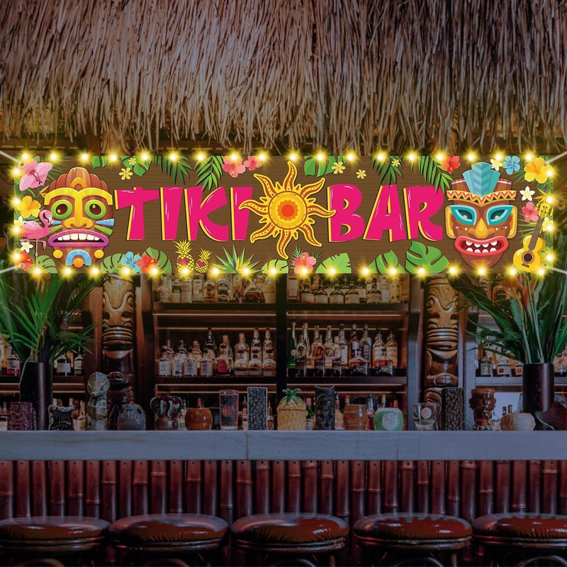 - Hawaiian Tiki Bar Banner: Our tiki party banner measures 15.7" x 72" with a LED light strip and a 20 feet/ 6m rope. The vibrant tiki elements serves as a focal point of the decor, adding an extra touch of authenticity and charm to the party space and providing the perfect hawaiian theme backdrop for photos.