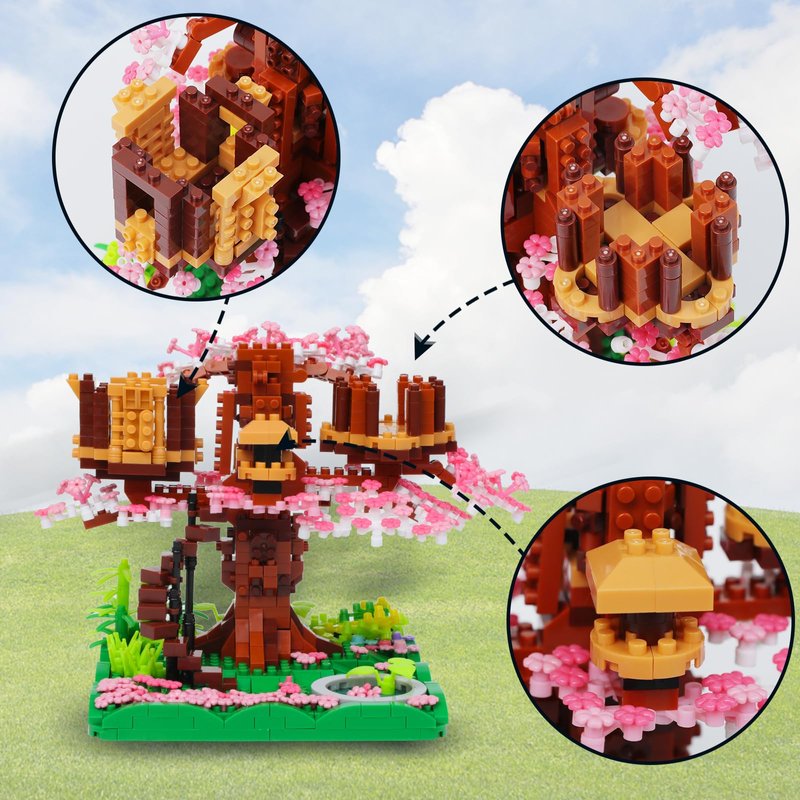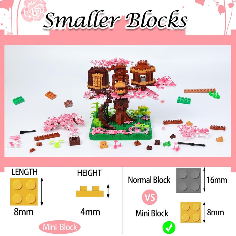 - 【2028 PCS MICRO BRICKS】The Building Blocks in this Set of Cherry Blossom Tree House are Smaller in Size Than Normal Ones and with a Large Number. Requires a lot of Patience and Perseverance to Complete. Not Suitable for Beginners of Building Blocks. NOT Compatible with Other Brands.