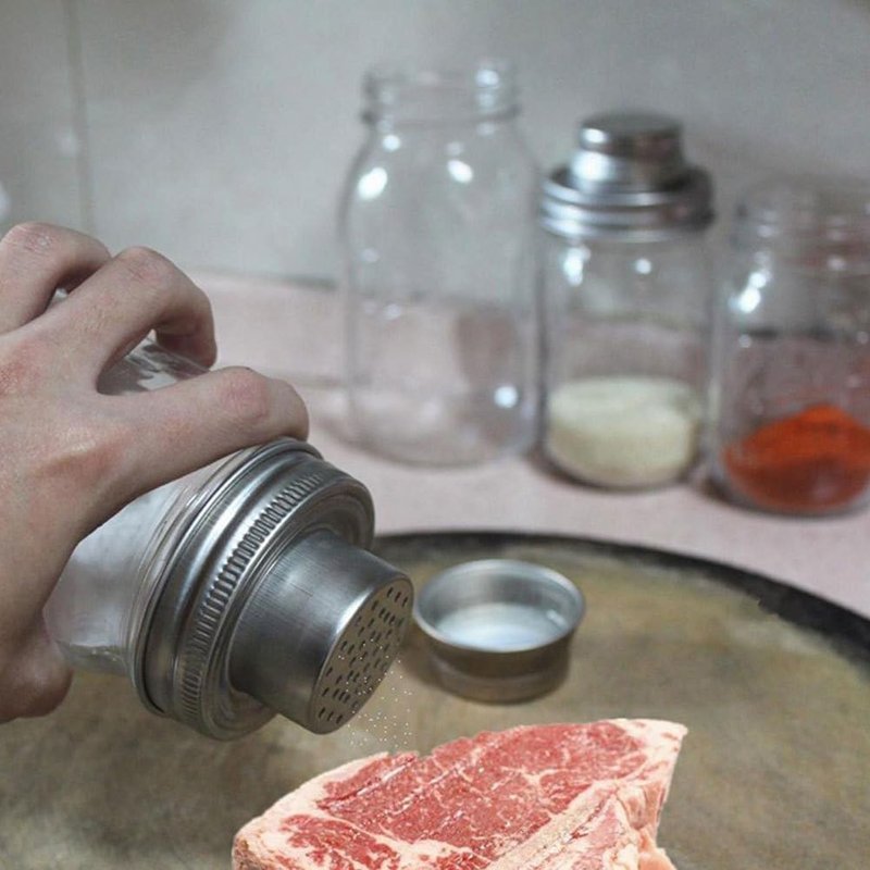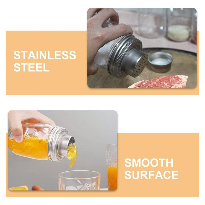 - Seasoning lids: it can be used not only as a flour sifter, condiment dispenser, but also as a cocktail shaker,mason bottle lids