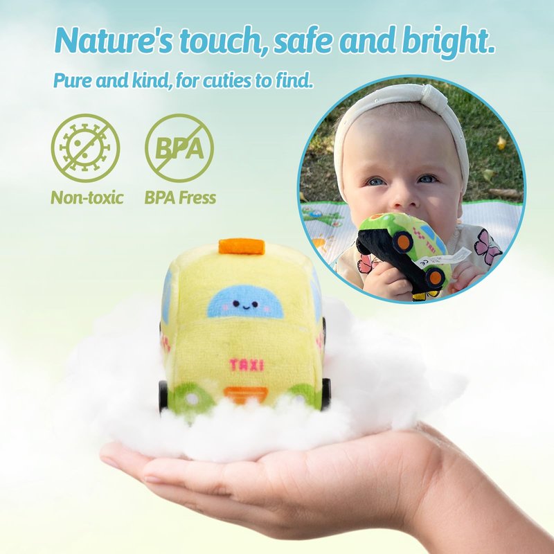 - 🚕SAFE & SOFT:This soft car toy set is made of high quality grade A plush fabric, super soft, safe, non-toxic, durable, close to sensitive skin, easy to clean, machine washable, hand washable.