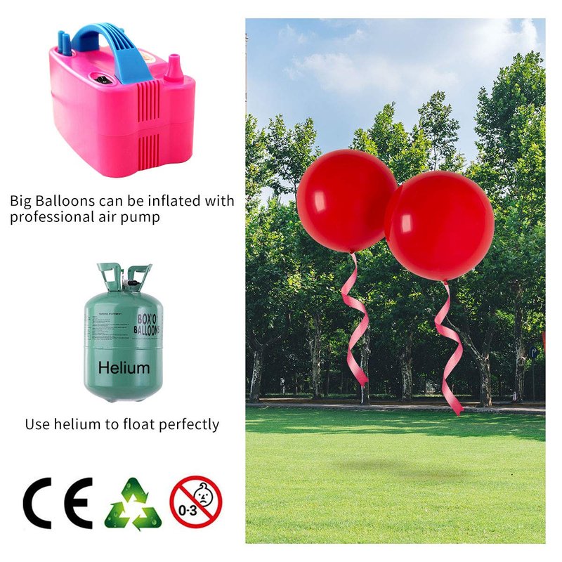 - USE: Our latex jumbo balloons can blows to about 24 inch/60 cm. Strongly recommended to inflate big round balloons with air pump. If need a floating effect is desired, helium gas is recommended.