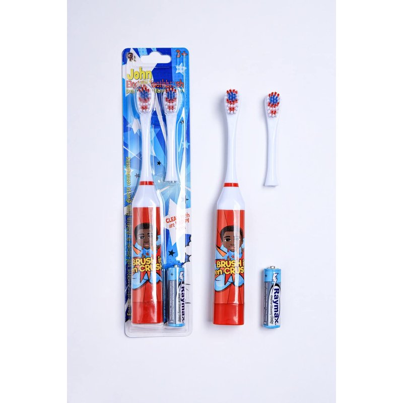 Our Reflections Kids Battery Powered, 2 Toothbrush Heads, Soft Bristles, Ages 3 and up. (John Electric Toothbrush, Red)