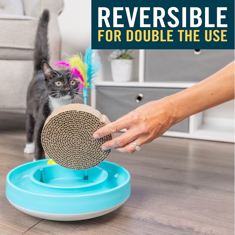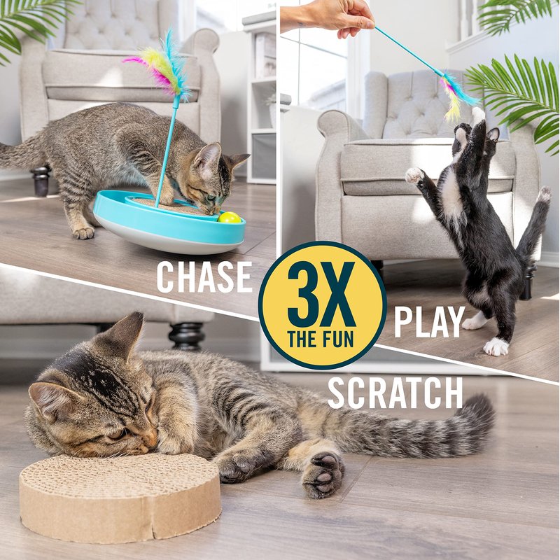 OurPets Wobble Scratch Track Cat Toy - Interactive Cat Toys for Indoor Cats with Cat Ball Track That Rolls, Feather Wand and Scratcher Pad. Great as a Kitten Toy for Self Play to Keep Them Busy