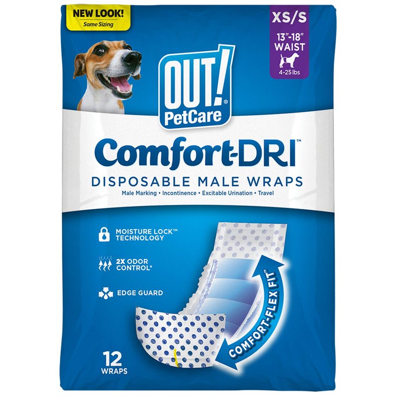 - NO MESS - OUT. PetCare Disposable Male Wraps provide protection for urinary incontinence, male marking, excitable urination and travel. For female dogs, try OUT. PetCare Disposable Dog Diapers.