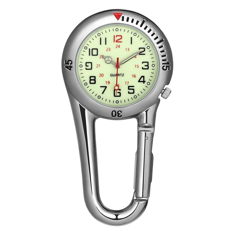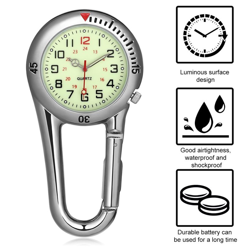 Multifunctional mountaineering buckle watch, ideal for clipping onto belt loop or uniform. Luminous glow in the dark. Great for hikers and backpackers even when you are in the dark. for birthday for family and outdoor enthusiasts.