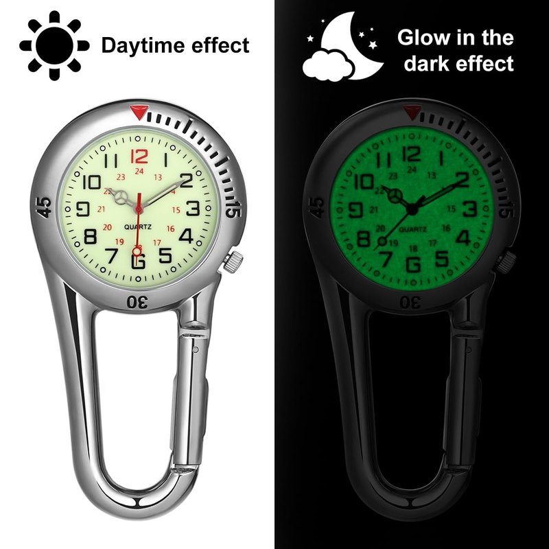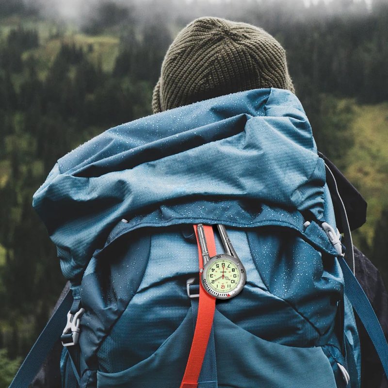 - PORTABLE DESIGN: This watch features a clip-on design that can be easily attached to backpacks, belts, or other gear, making it convenient to check the time any moment. Whether you're rock climbing, hiking, or engaging in other outdoor activities, this watch provides you with easy time management. Its compact design ensures it doesn't take up much space and reduces the risk of loss.