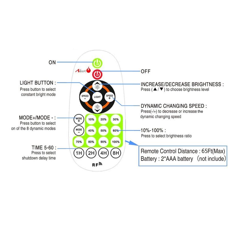 - ๐กใ RF Remote Control Timer Dimmer ใ- ADust Dimmer with antenna design provides you 150 ft (45 Meters) of controlling distance, free from long wires, more convenient for you to turn on /off the light and adjust the brightness, even the light string is outdoor but you are inside of your house. Up to 8 hours timer setting for your outdoor party and save energy. (Kindly Notice: Control distance of the dimmer might be affected while meet obstacles or low battery)