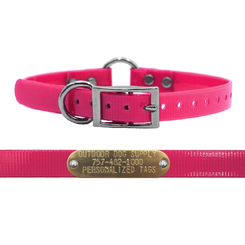 Outdoor Dog Supply's 3/4" Wide Solid Ring in Center Dog Collar Strap with Custom Brass Name Plate … (Pink)