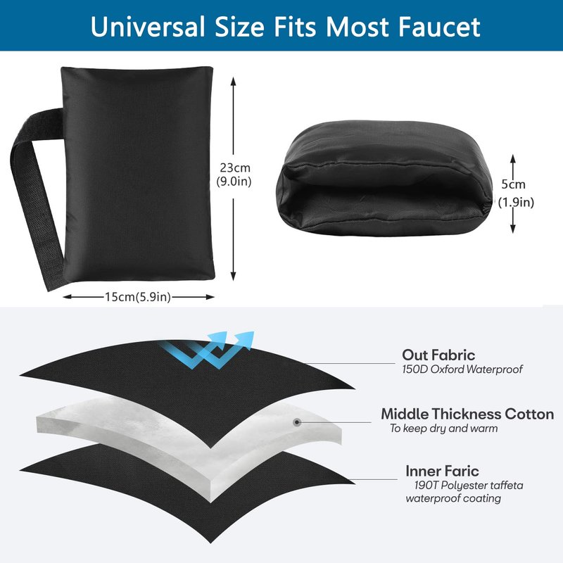 - 【Frost proof & Waterproof & Insulation Materials】 Made of waterproof polyester 210D Oxford outer fabric with strong and thick waterproof coating inside, which keeping your faucets from wind, frost, rain and snow impenetrable.