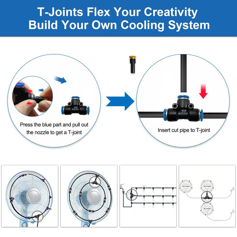 - 【DIY your own cooling system】This US standard mister for outside can be used as outdoor cooling systerm for patio, fan, umbrella, porch, pergola, vestibule, animals, or use as garden irrigation kit. Cools the surrounding air temperatures up to 20℃ or 68℉.