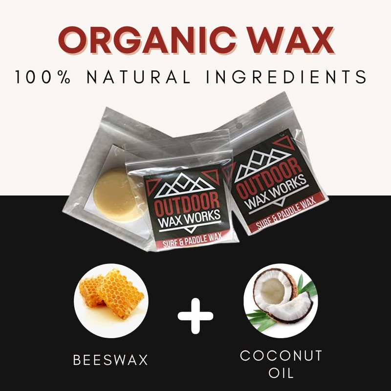 - All-natural, surfboard wax is environmentally friendly, protecting ocean reefs and marine life; Made of 100% organic substances like beeswax and coconut oil, our formula is a safe alternative to other waxes