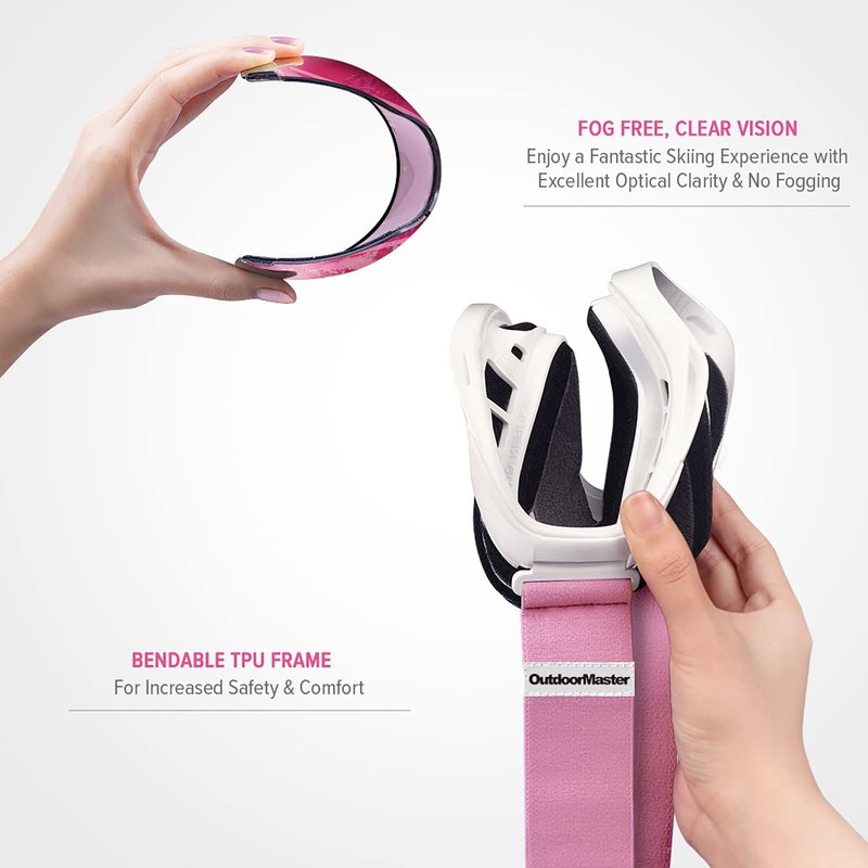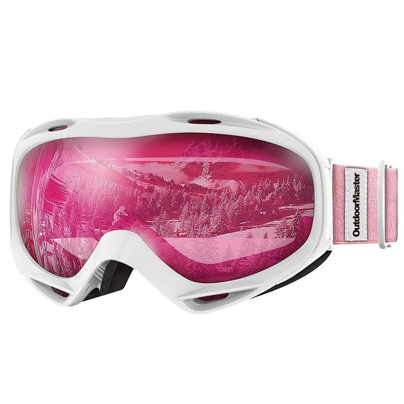 OutdoorMaster OTG Ski Goggles - Over Glasses Ski/Snowboard Goggles for Men, Women & Youth - 100% UV Protection (White Frame + VLT 46% Pink Lens)