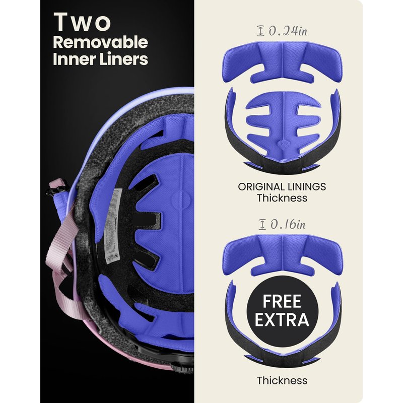 - Extra Removable Lining: Skateboard helmet with two removable liner for different head sizes and easy to wash the sweat away
