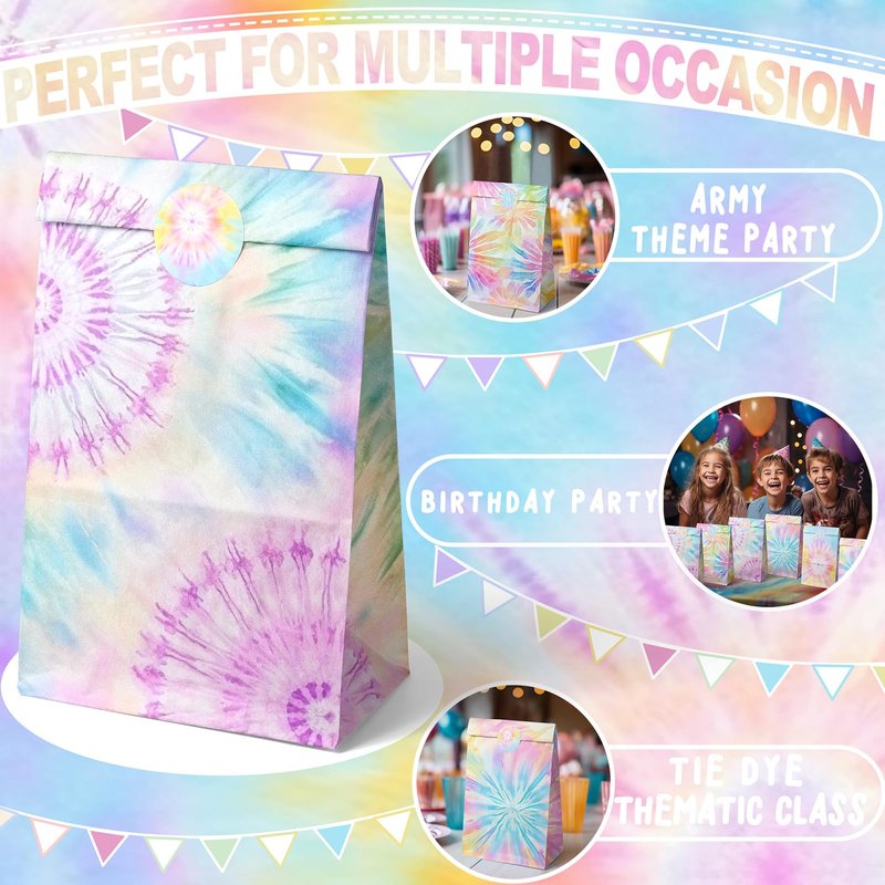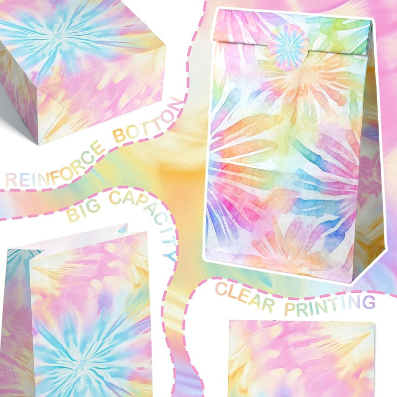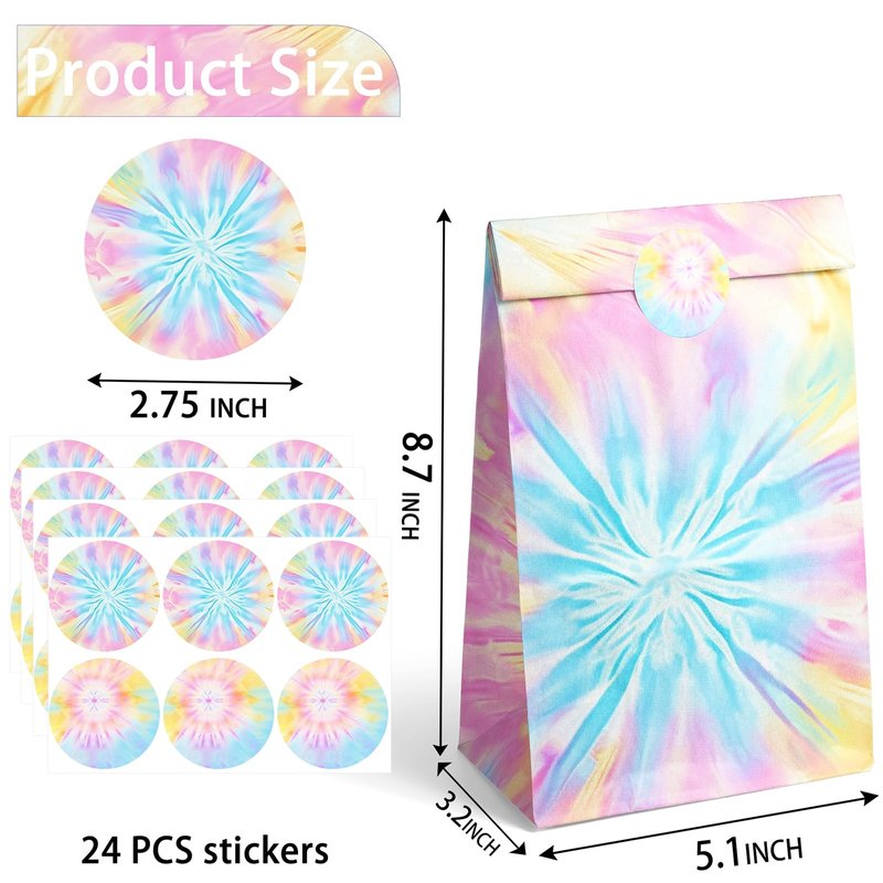 - Complete Package - Each set includes 24 meticulously crafted Tie Dye themed paper bags and 24 vibrant stickers featuring psychedelic tie-dye patterns. Feel free to mix and match stickers and bags to create a custom tie-dye theme that suits your preferences.
