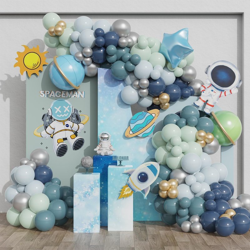 - Easy to Use: Our space birthday party supplies offer 4pcs tools including ribbon, 5m balloon chain, 100-point glue to help you to make space balloon arch more easily. Firstly, inflate the balloons and string them together with balloon chains. Then, stick the balloons garland arch on the wall with dot glue or hang it on a party background with ribbon. Finally, use glue dot to stick 5-inch balloons onto the balloon garland arch to fill in the gaps