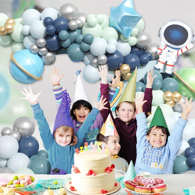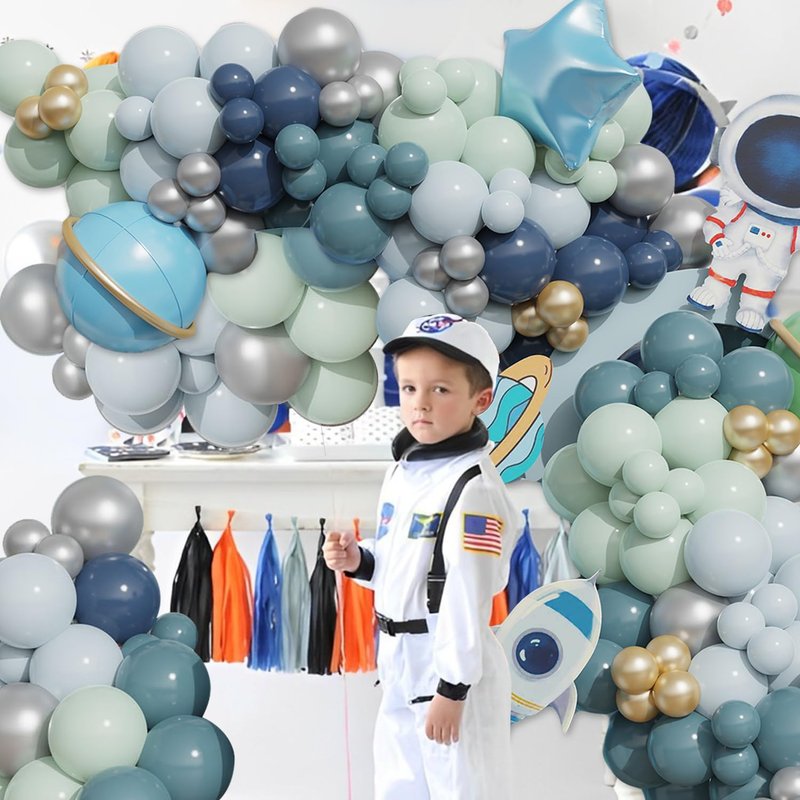 Outer Space Birthday Decorations 150 pcs Universe Astronaut Theme Balloons Arch Kit Navy Blue Sea Blue Pastel Blue Latex Balloons For Boys Kids Birthday Party Baby Shower Decor