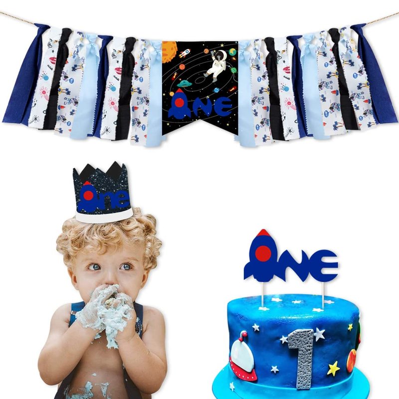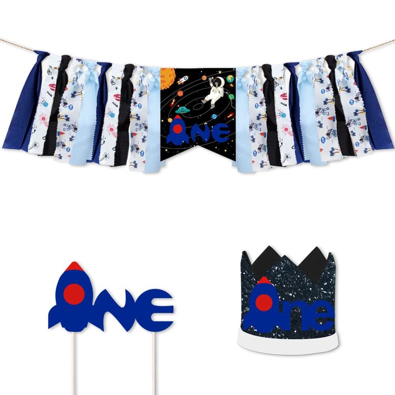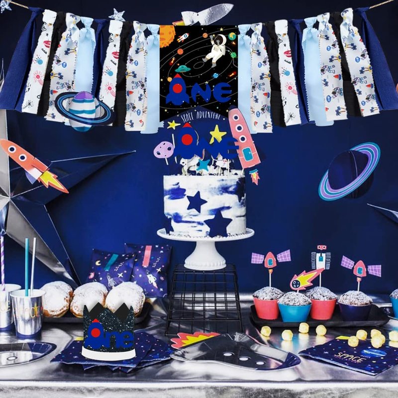 Outer Space Spaceship Theme 3 in 1 Birthday Party Supplies, Outer Space Astronaut First Birthday Decorations Kit