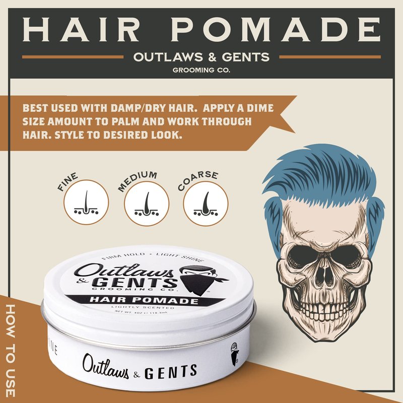 - PREMIUM INGREDIENTS: Outlaws & Gents Grooming Co. Hair Pomade is made with the highest-quality ingredients to ensure optimal results and nourishment for your hair.