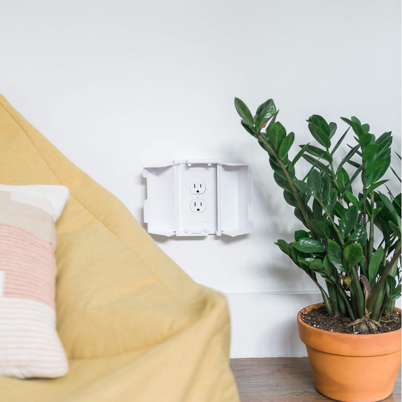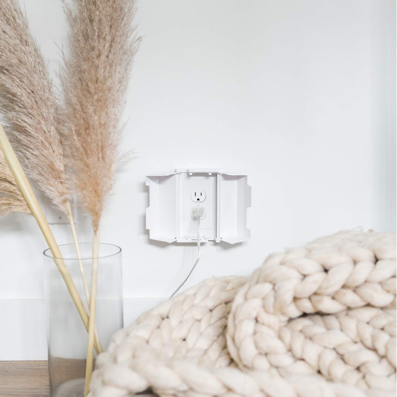 - Securely encase your wires while they are plugged in to avoid dangerous tampering by your little ones. Neutral design blends seamlessly with surroundings, not disturbing your décor