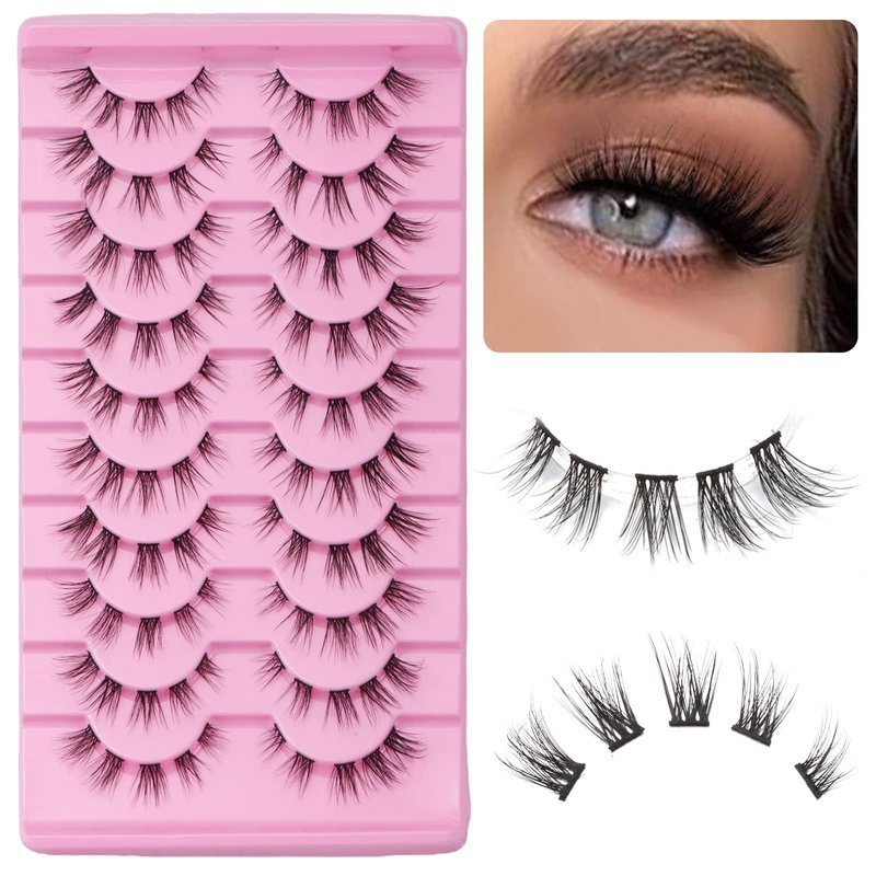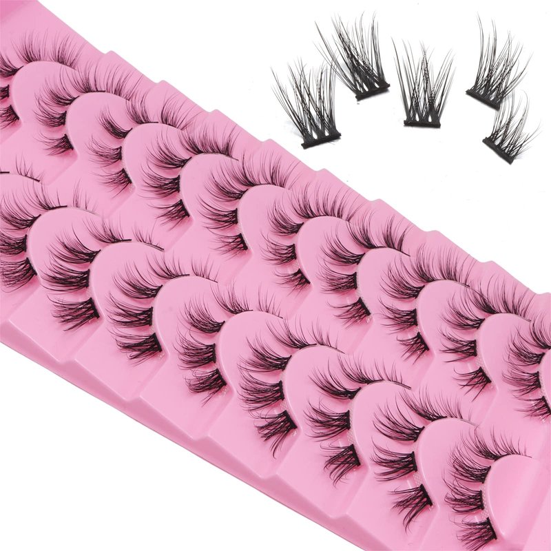 outopen 10 Pairs Cluster Lashes Natural Look Manga Lash Clusters C Curl Wispy Individual Eyelashes Cat Eye Lashes DIY Eyelash Extensions